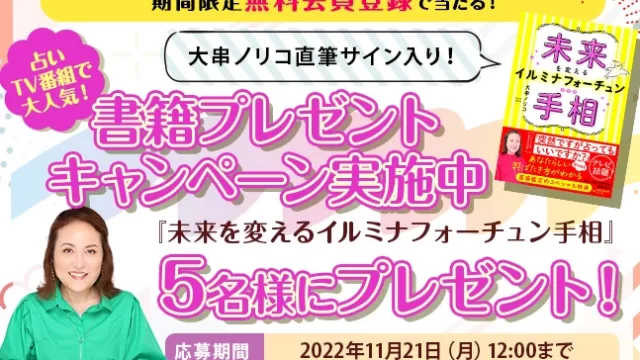 占い速報 占い番組で大人気!大串ノリコの最新書籍プレゼントキャンペーンを占いポータルサイト「うらなえる本格鑑定」で提供開始! 2022年9月13日 reviewers 占い.tokyo テレシスネットワーク株式会社(本社:東京都港区、代表取締役:鷹石惠充https://www.telsys.co.jp/)は、2022年10 …